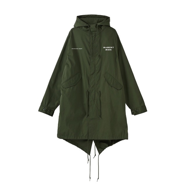 発送予定日: - 左胸にはブランドロゴ。右胸には『memento mori』の刺繍入り。 適度にゆとりがあるシルエットで、裏地のない一重仕立ての軽さが特徴のモッズコートです。 撥水加工を施してあるので汚れにくく、型崩れの少ないT/Cウェザー生地を使用しています。 裾とウエストにはドローコードが付き、袖口はボタンで調整が可能です。