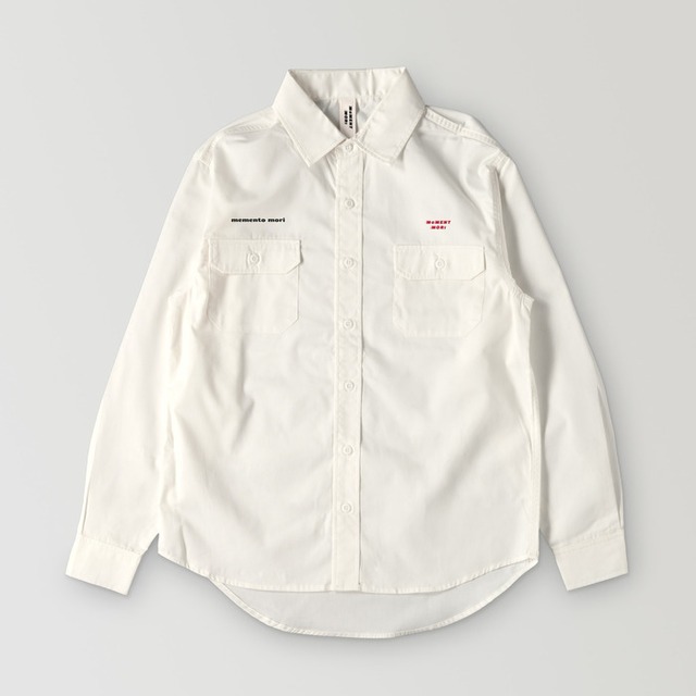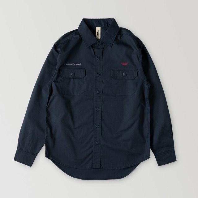 発送予定日: - 左胸にはブランドロゴ。右胸には『memento mori』の刺繍入り。 耐久性があり、ツヤのあるコットンツイル生地を使用したワークシャツです。 胸ポケットの片側にはペン差しが付き、細部にまでこだわった実用性に優れたデザインとなっています。 縫製は2本針のチェーンステッチなので、作りも頑丈で 着用を繰り返すうちにステッチの縫い縮みが浮かび上がるので経年変化が楽しめるのも魅力です。