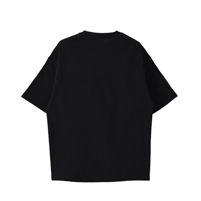 パッと見は黒無地なのに、よく見ると黒でブランドロゴが刺繍されているのがポイントな、超極厚生地のビッグシルエットTシャツ。