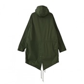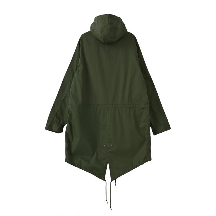 適度にゆとりがあるシルエットで、裏地のない一重仕立ての軽さが特徴のモッズコートです。